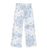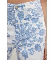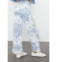 Kadın Moda Şık Kot Pantolon Geniş Paça Kısa Boy Denim Çiçek Baskılı Yüksek Bel Culotte Jeans