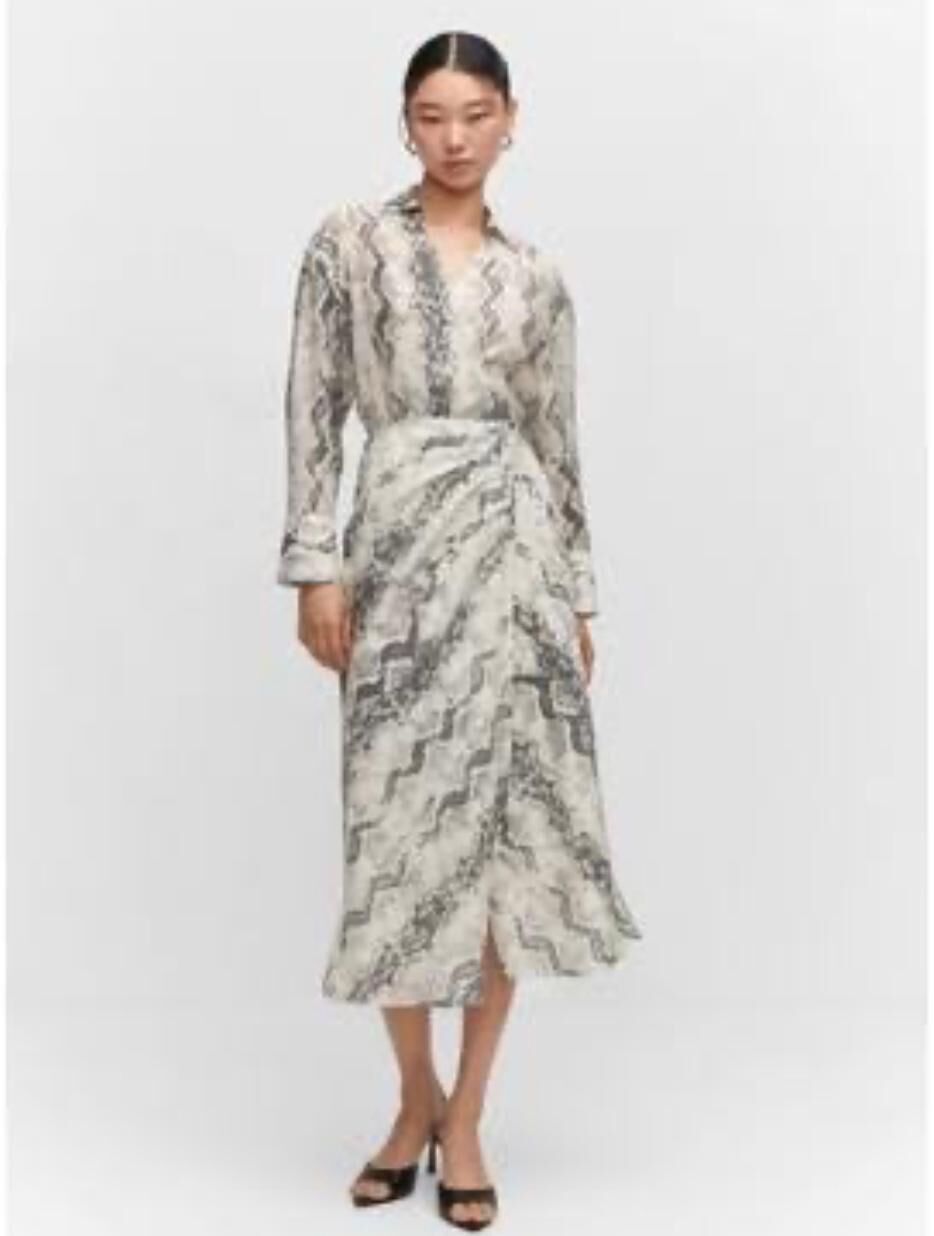 YILAN DESENLİ/GÖMLEK YAKA ELBİSE (M BEDEN)
