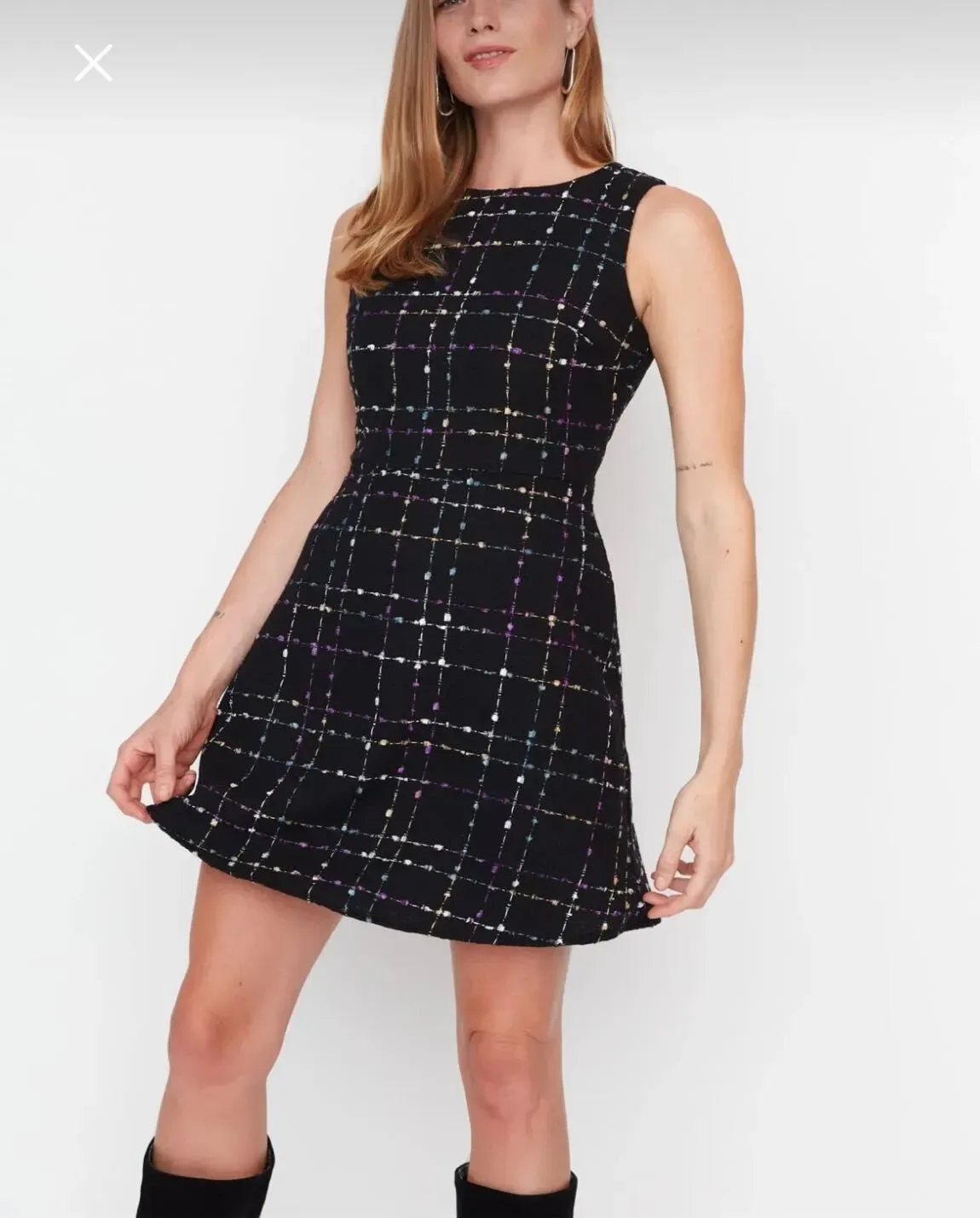 Siyah A Kesim Mini Tüvit Dokuma Elbise
