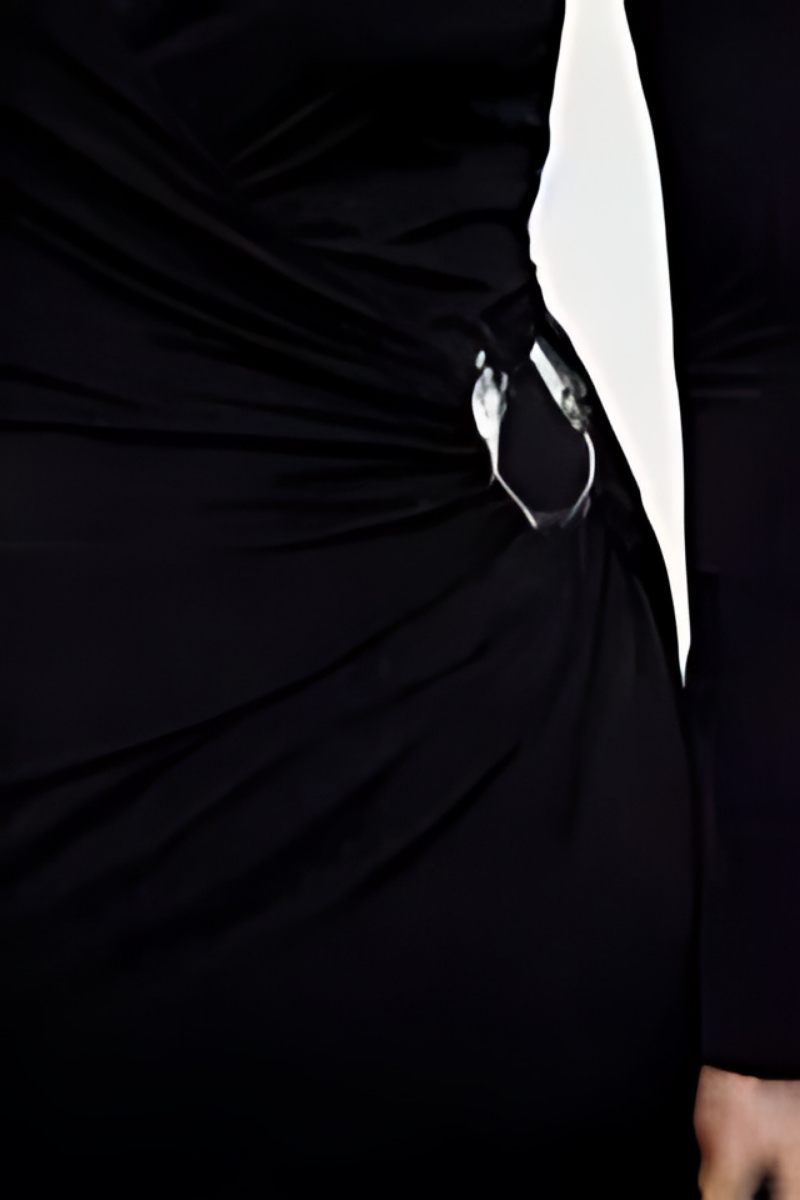 Siyah Dar Kesim Örme Abiye Elbise Aksesuar Detayları Gece Mezuniyet Elbisesi
